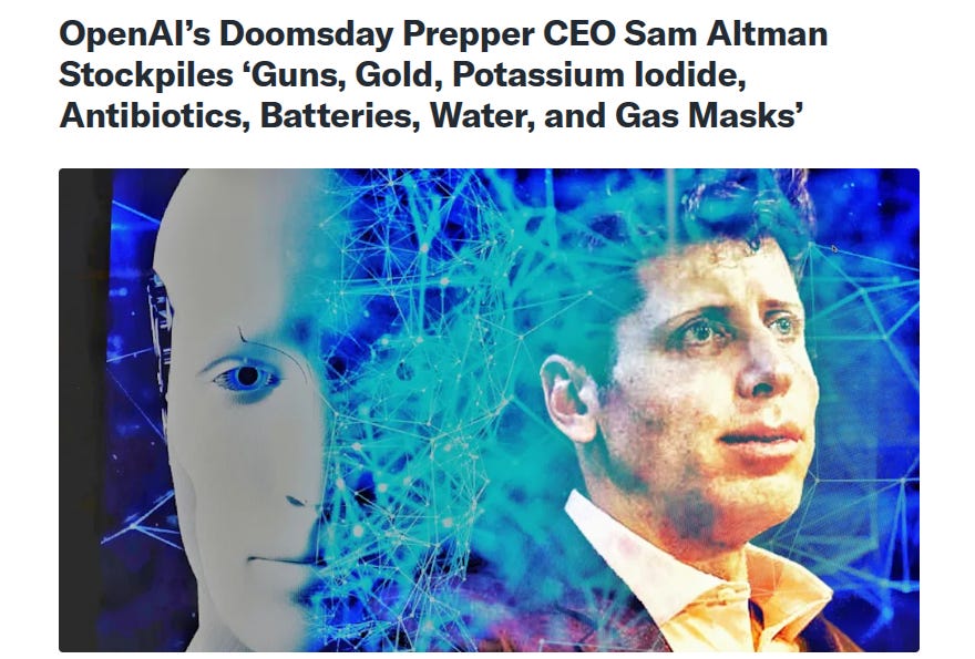 OpenAI's Sam Altman has stockpiled gas masks, antibiotics, and gold bars, while others like Oracle's Larry Ellison own entire Hawaiian islands.